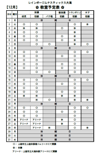12月の教室予定表になります。